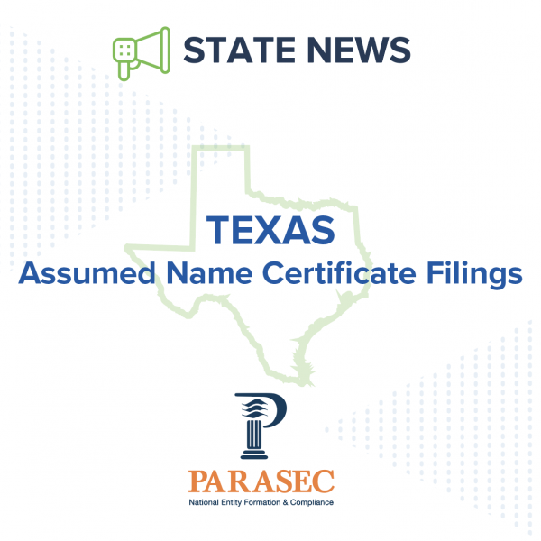 Effective September 1, 2019 (pursuant to House Bill 3609), the Texas Business and Commerce Code will be amended to provide that a corporation, LP, LLP, LLC or foreign filing entity required to file an assumed name certificate shall file with…